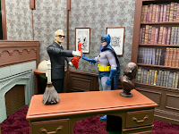Everyone was photographed in the Wayne Manor playset because literally every Google Image search for “Batman 66 library” returned three dozen pictures of the playset anyway. I gave it red shag carpeting in honor of Nightwing.